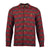 Checked long sleeve wool flannel jacket with fake shearling lining. Welt pockets and logo patch on the left sleeve.
