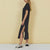 Maxi T-shirt dress. Slightly oversized fit with side slits for easy walking. Print on the chest, left side. Moonless night colour.
